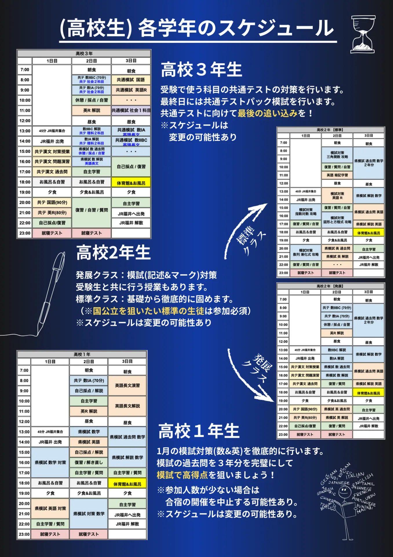 夏と冬に勉強合宿があります!